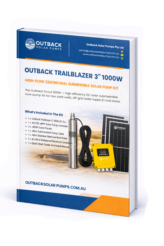 - 1 × Outback Trailblazer 3" 1000W DC Solar Bore Pump